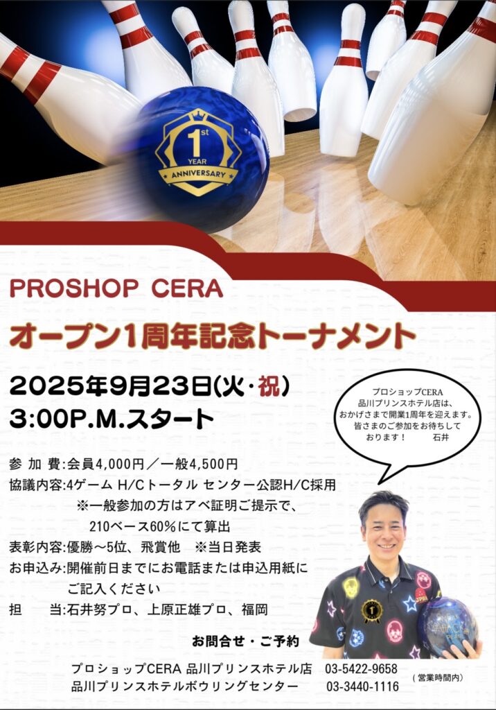TEL:プロショップセラ 03-5422-9658 / 品川プリンスホテルボウリングセンター 03-3440-1116