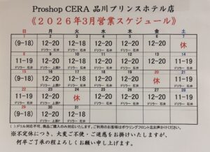 3月の営業スケジュールを更新しました